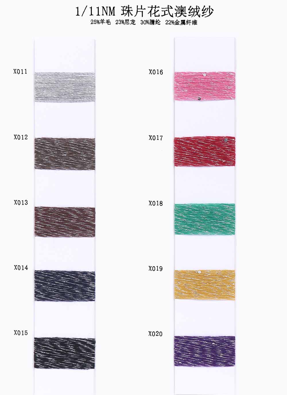 25%羊毛Wool 23%尼龙Nylon 30%腈纶Acrylic 22%金属纤维Metallic fiber