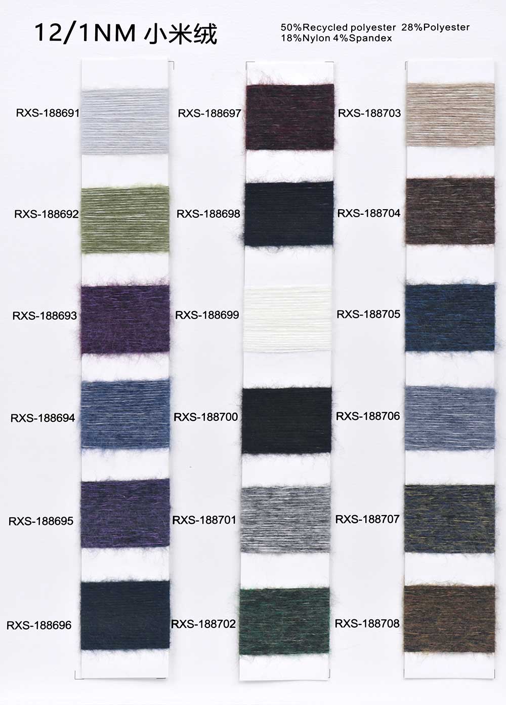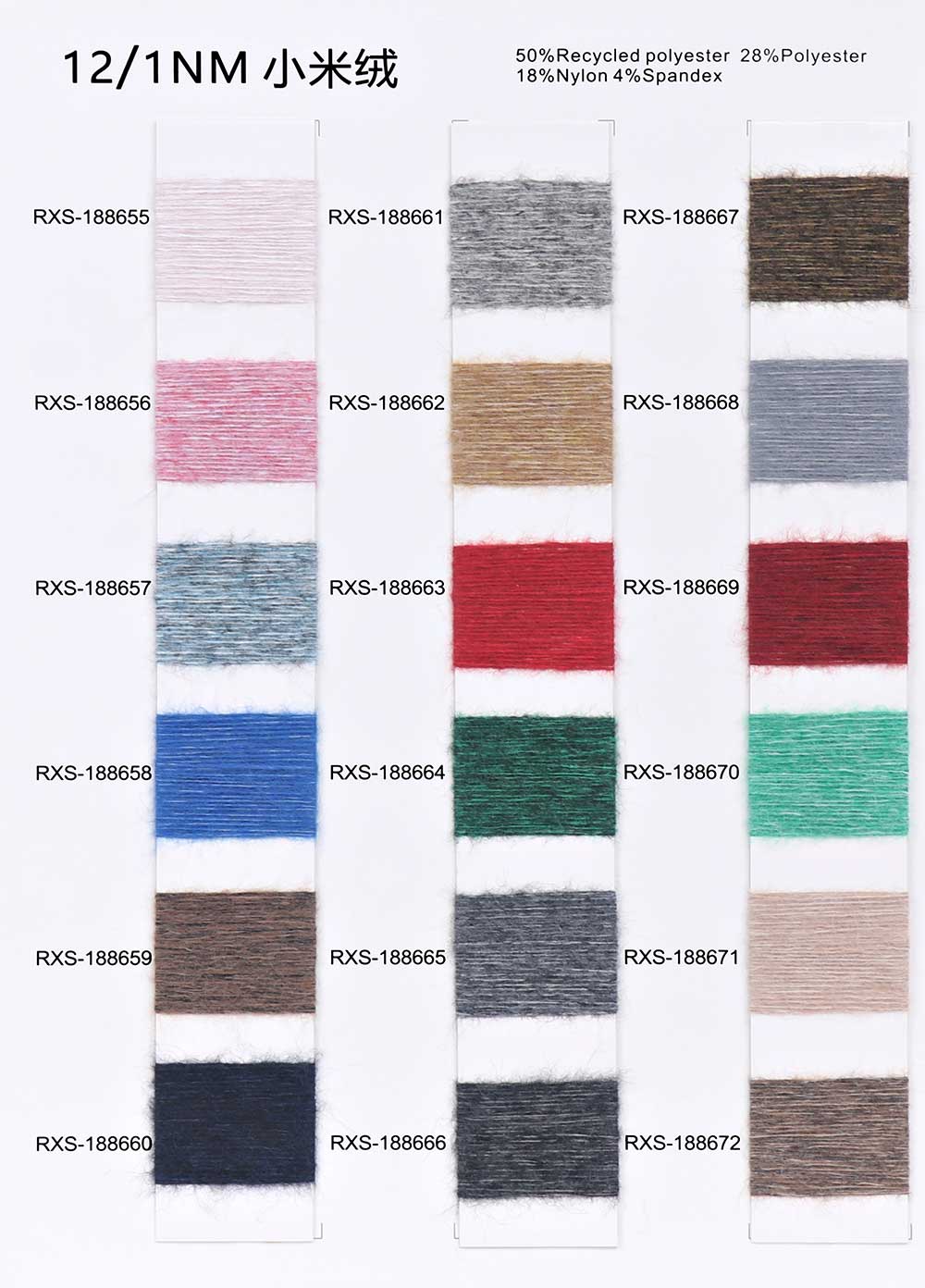 50%再生涤纶Recycled Polyester 28%涤纶Polyester 18%尼龙Nylon 4%氨纶Spandex