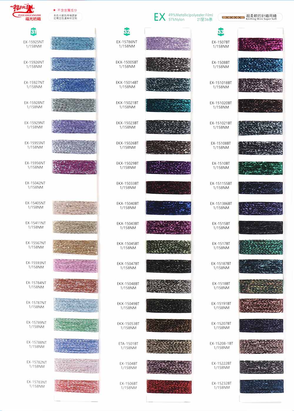 64%尼龙Nylon 36%金属丝Metallic Pet