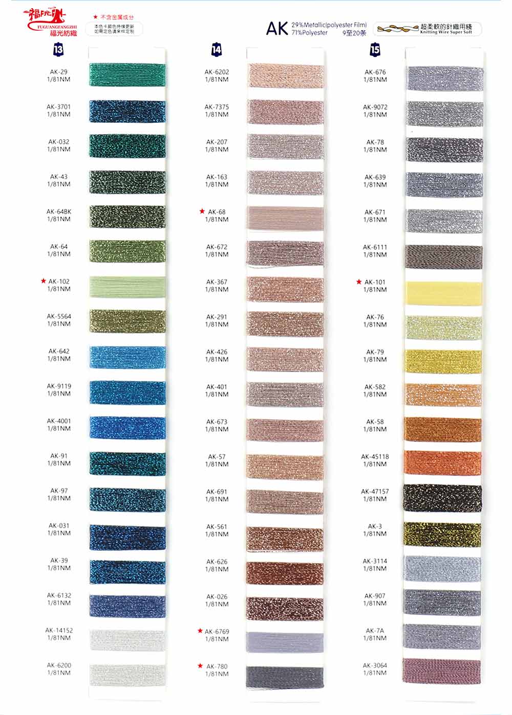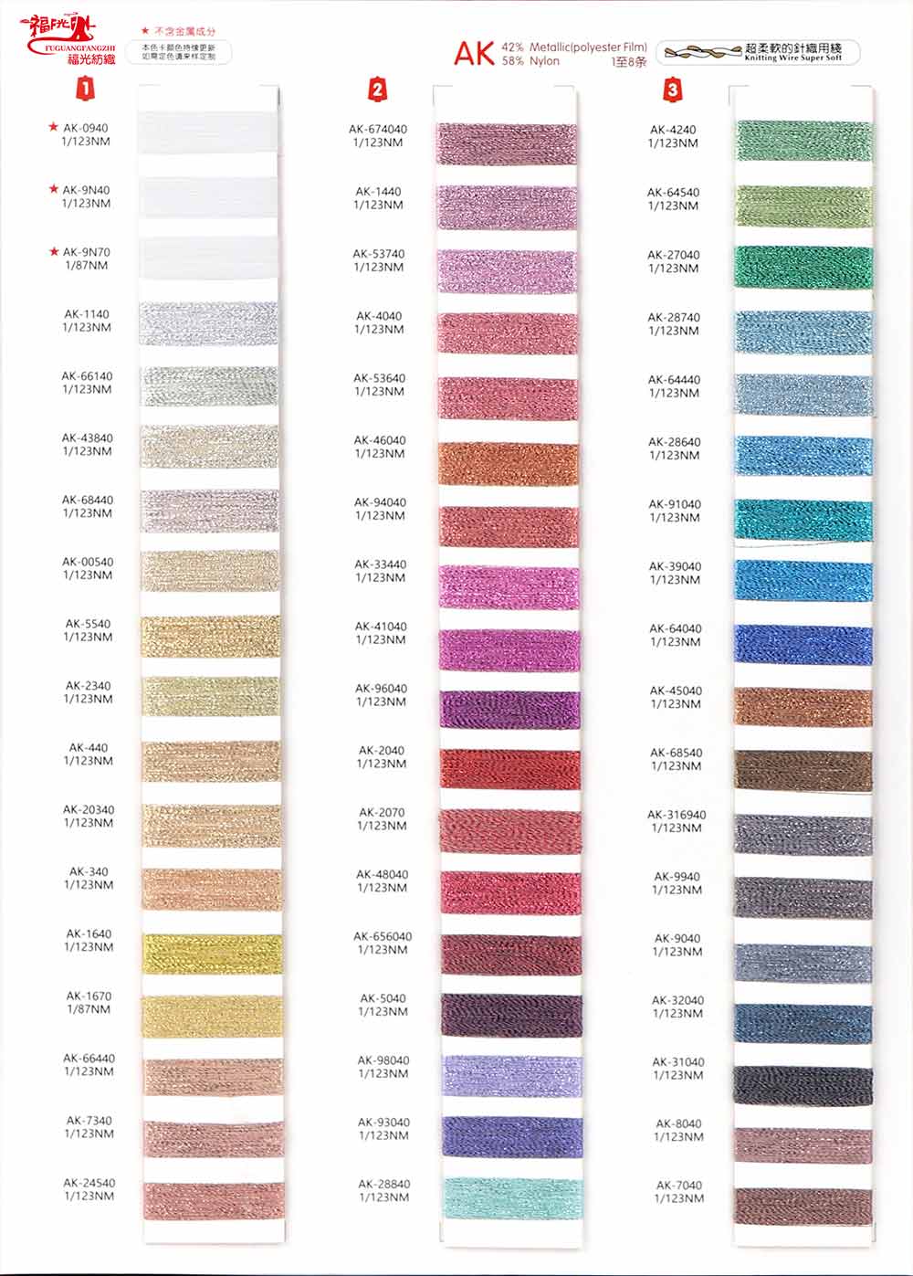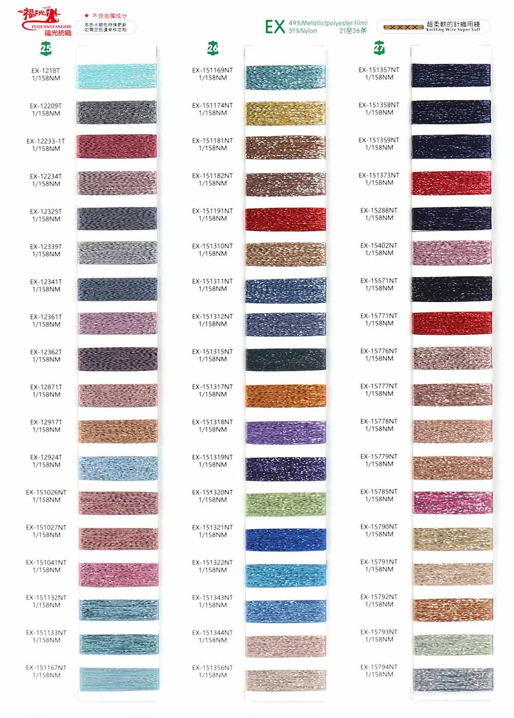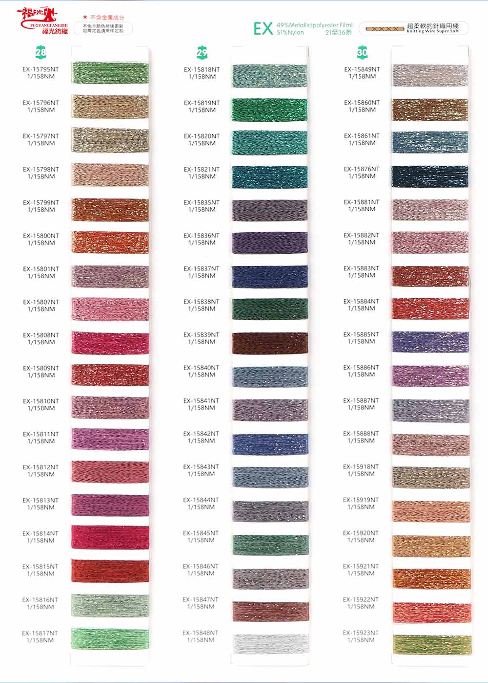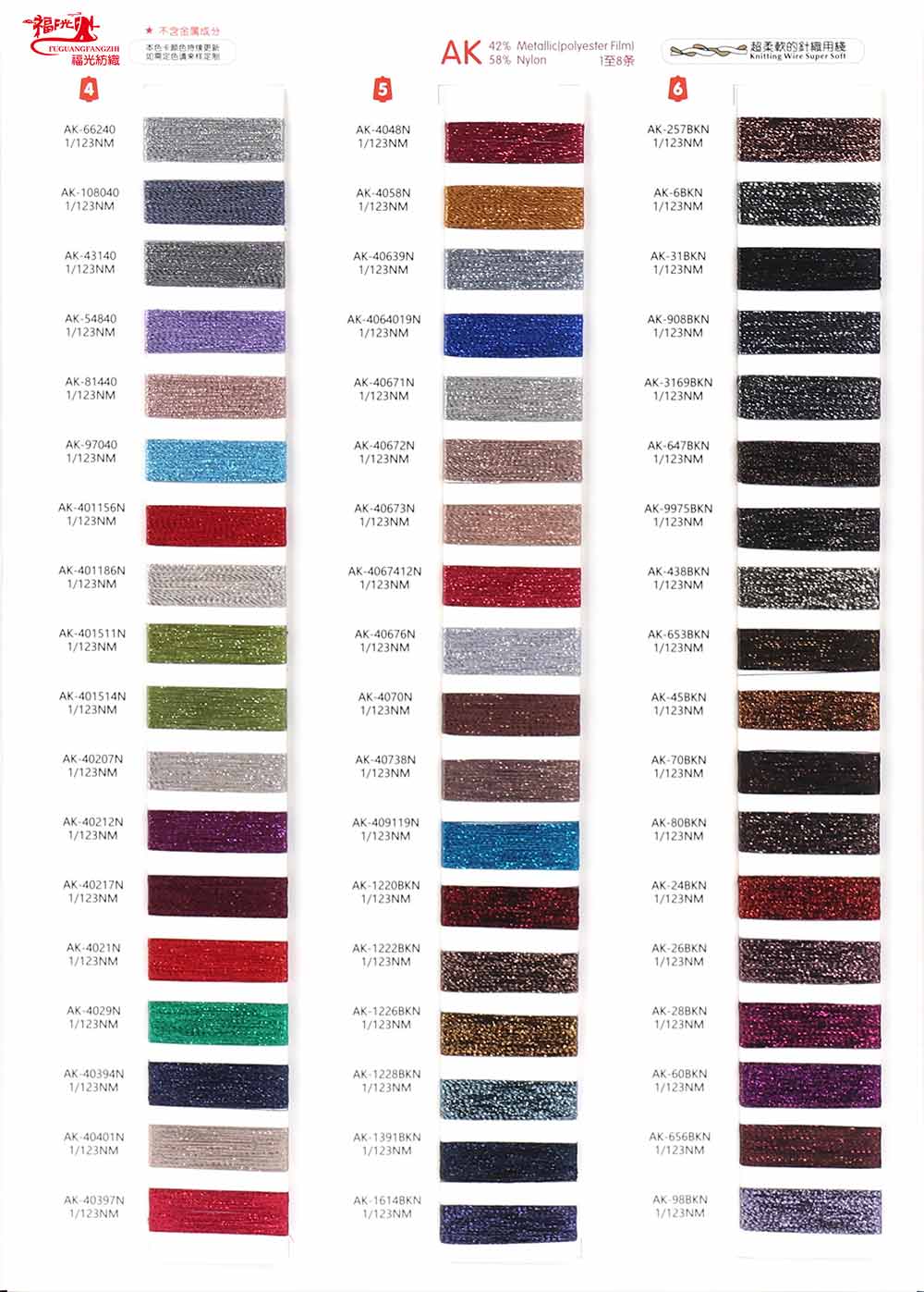 42%金属丝Metallic (Polyester Film)58%尼龙Nylon