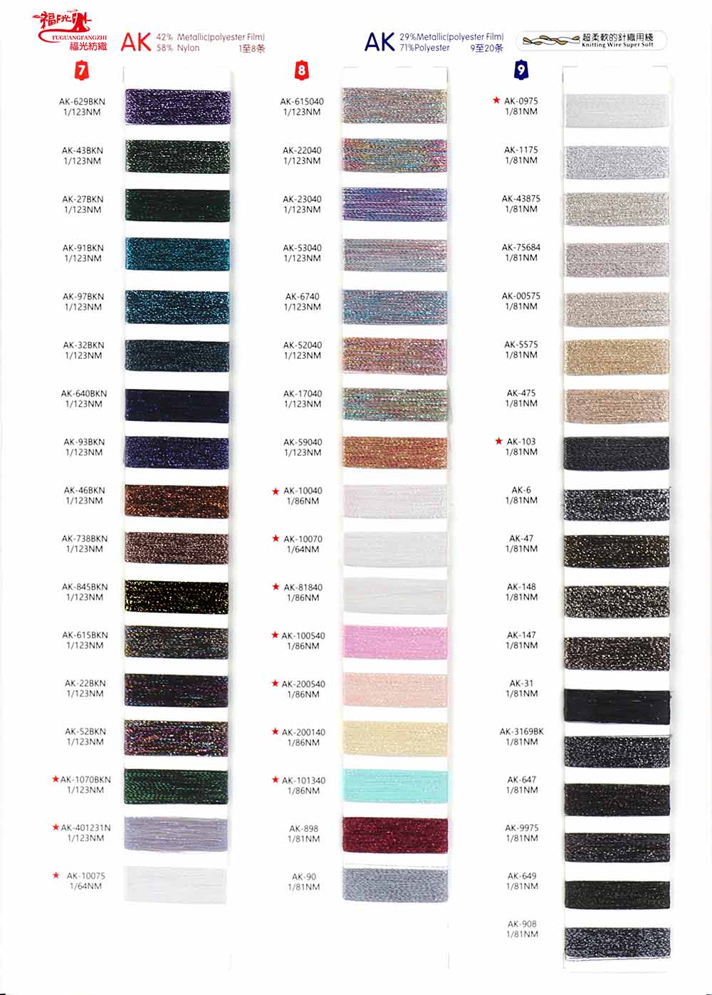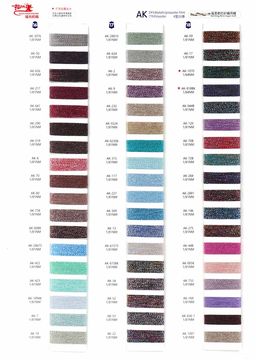 83%尼龙Nylon 17%Metallic金属丝(Polyester Film)