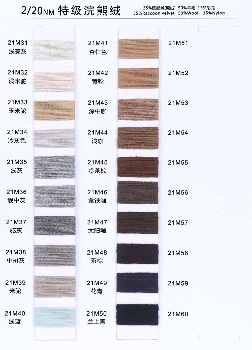 35%浣熊绒(原绒)Raccoon Velvet 50%羊毛Wool 15%尼龙Nylon