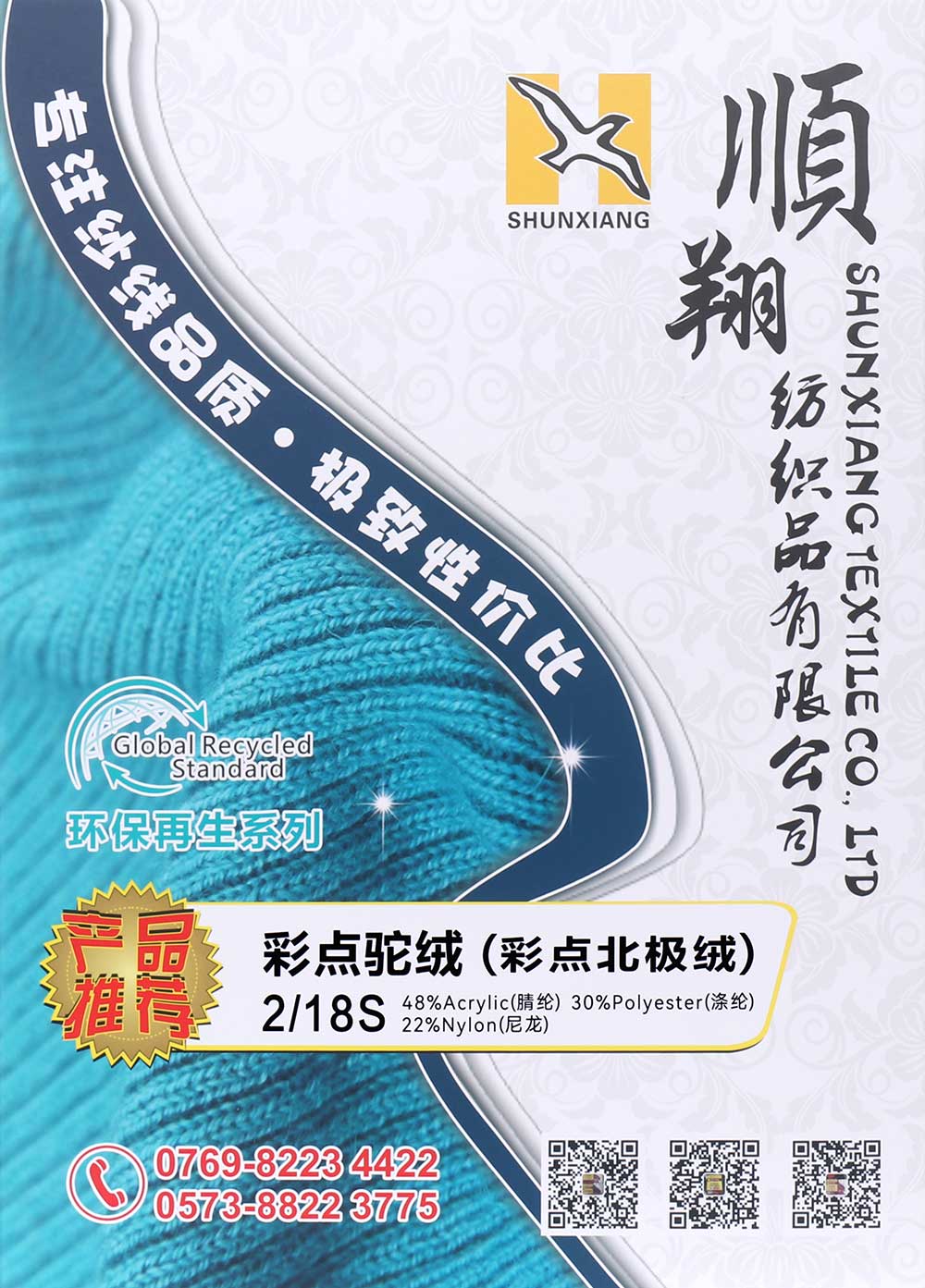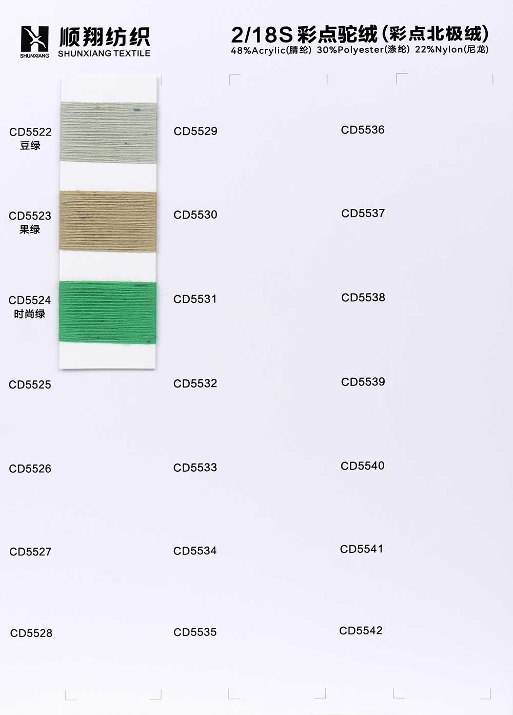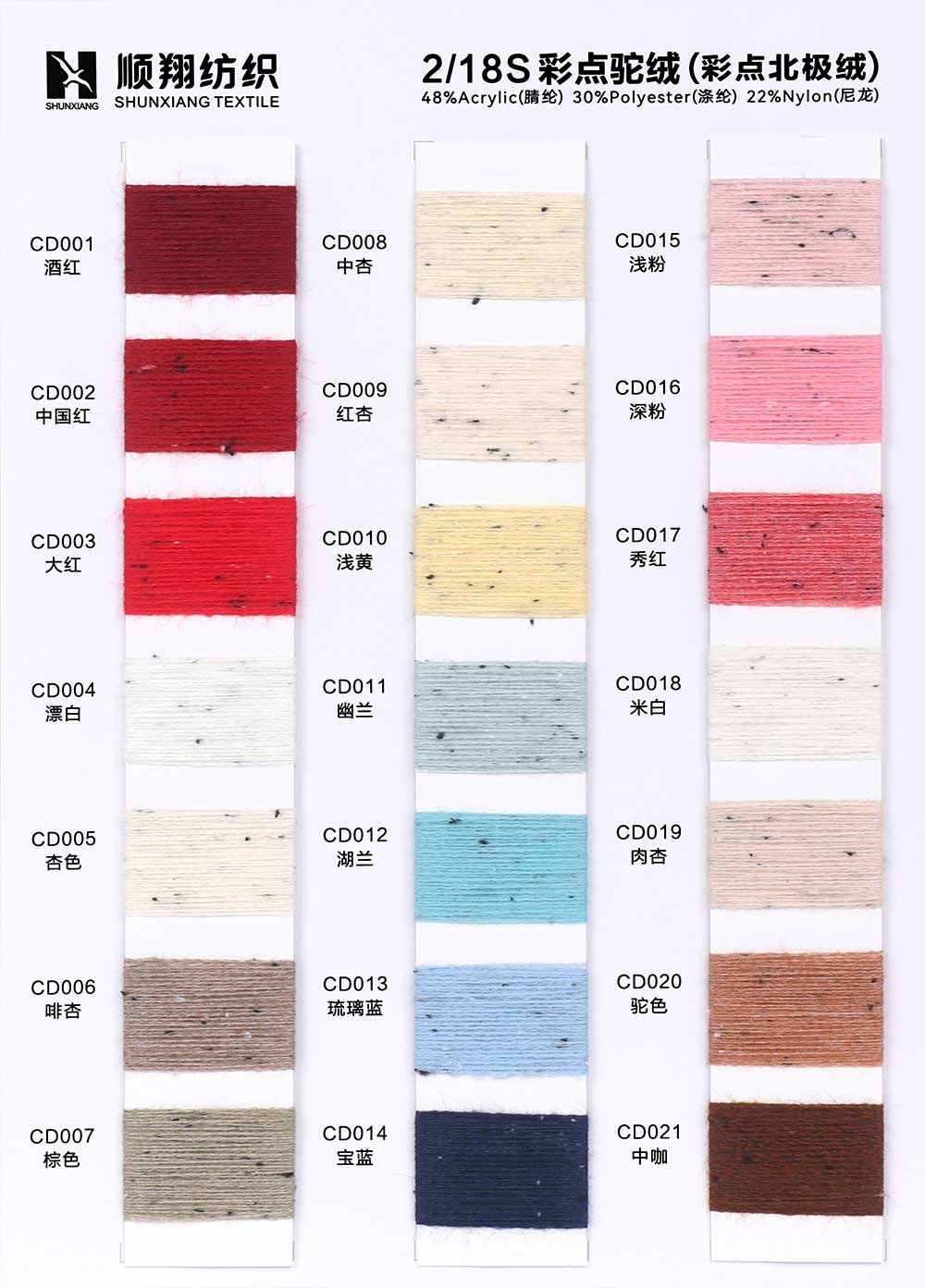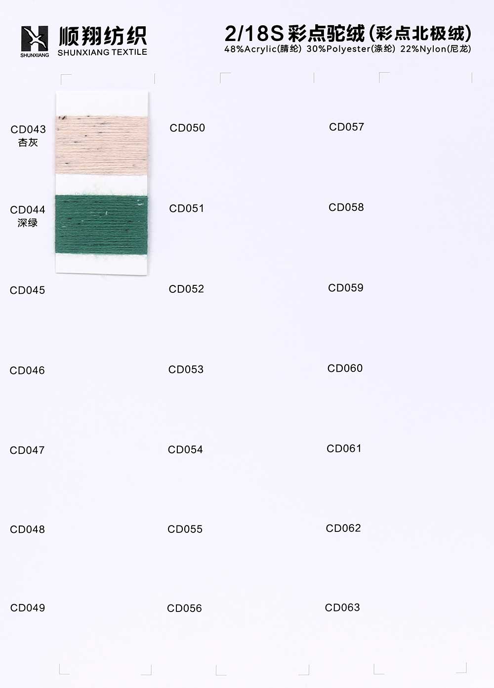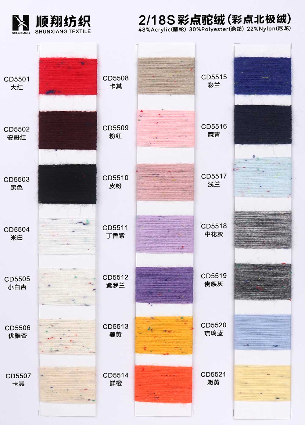 48%腈纶Acrylic 30%涤纶Polyester 22%尼龙Nylon