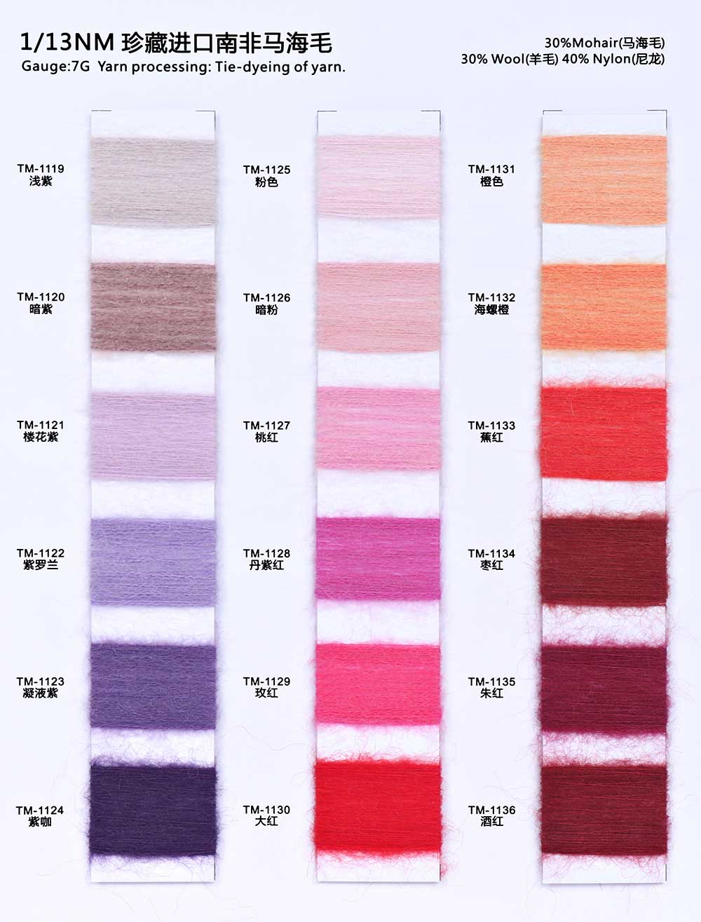 30%马海毛Mohair 30%羊毛Wool 40%尼龙Nylon