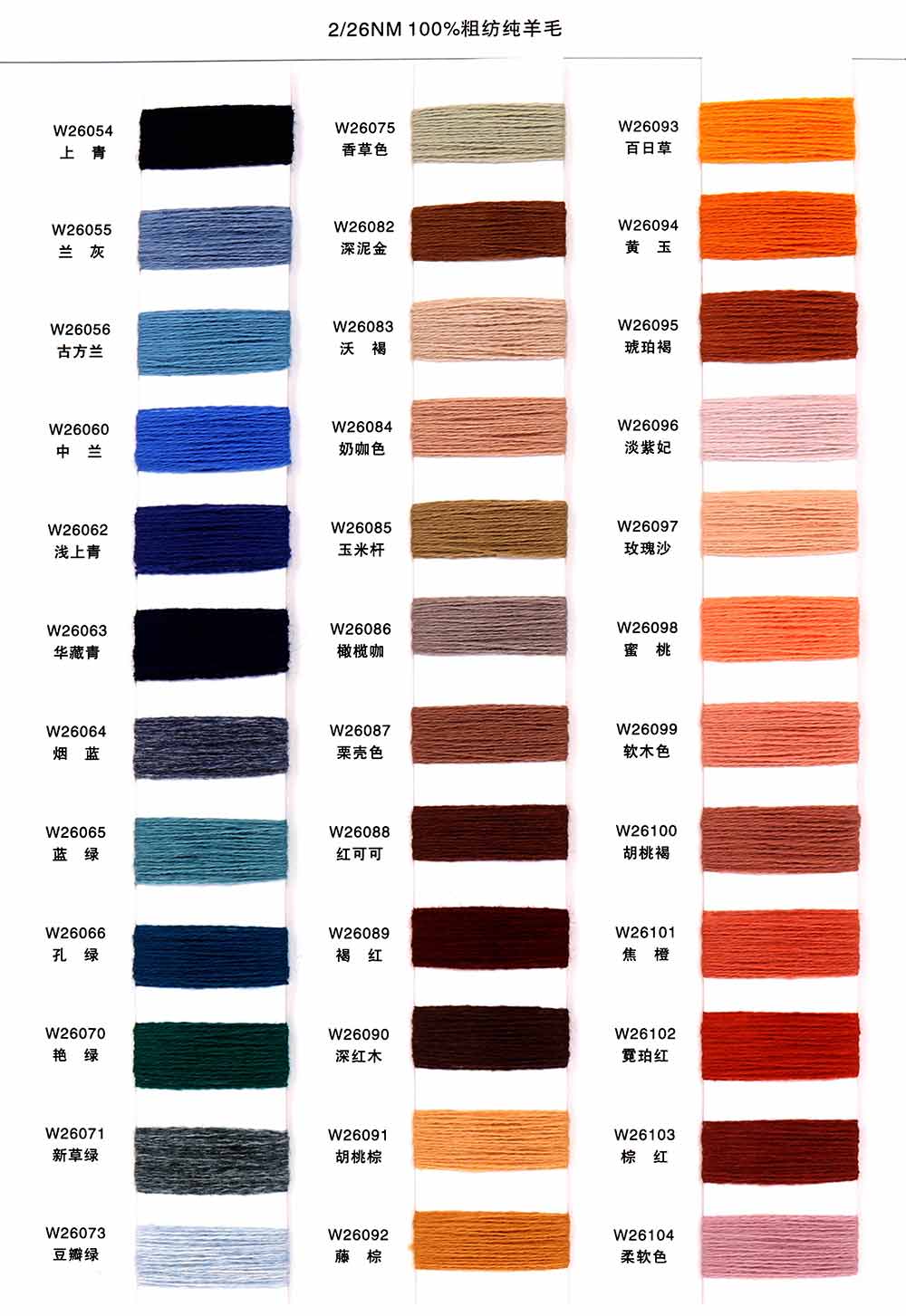 粗纺、半精纺纱纱,有羊绒羊毛混纺纱、全羊毛,高中低各种比例羊毛混纺、水溶羊毛,棉及棉毛绒,天丝、加葱加珠纱